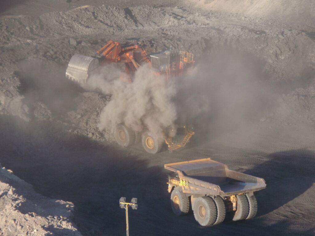 The method is applied in Blind Bore Drilling of vertical shafts for mine ventilation. The generated flow extracts waste rock from the area surrounding the drill head.